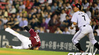 [OSEN=인천, 민경훈 기자] 23일 오후 인천 문학구장에서 열린 '2012 팔도 프로야구' SK 와이번스와 두산 베어스의 경기에서 6회초 1사 주자 1,3루 두산 이원석의 유격수 앞 땅볼때 1루 주자 양의지가 2루에 세이프되고 3루 주자 최준석
