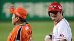[OSEN=광주, 이대선 기자] 24일 오후 광주 무등야구장에서 열린 '2012 팔도 프로야구' KIA 타이거즈와 한화 이글스의 경기, 6초 2사 1루 한화 최진행이 우월 투런 홈런을 치고 최만호 코치와 하이파이브를 하고 있다. 3연전 마지막 경