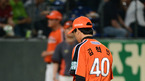 [OSEN=광주, 이대선 기자] 24일 오후 광주 무등야구장에서 열린 '2012 팔도 프로야구' KIA 타이거즈와 한화 이글스의 경기, 5회말 2사 2루 KIA 송산 타석때 한화 김혁민이 마운드를 내려가고 있다. 김혁민은 4⅔이닝 7실점을 기록했다.