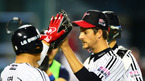 [OSEN=잠실, 민경훈 기자] 24일 오후 서울 잠실구장에서 열린 '2012 팔도 프로야구' LG 트윈스와 넥센 히어로즈와의 경기에서 5회초를 마치고 LG 선발 주키치가 덕아웃에서 이병규와 하이파이브를 하고 있다. LG 선발로 나서는 주키치