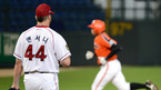[OSEN=광주, 이대선 기자] 24일 오후 광주 무등야구장에서 열린 '2012 팔도 프로야구' KIA 타이거즈와 한화 이글스의 경기, 5회초 무사 KIA 앤서니가 한화 최진행에게 좌월 솔로 홈런을 허용하고 그라운드를 바라보고 있다. 3연전 마