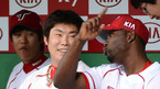 [OSEN=광주, 이대선 기자] 24일 오후 광주 무등야구장에서 열린 '2012 팔도 프로야구' KIA 타이거즈와 한화 이글스의 경기에 앞서 KIA 새로운 외국인 투수 헨리 소사(27)가 나지완과 하이파이브를 하고 있다. 3연전 마지막 경기, 한화 6