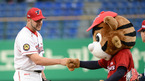[OSEN=광주, 이대선 기자] 24일 오후 광주 무등야구장에서 열린 '2012 팔도 프로야구' KIA 타이거즈와 한화 이글스의 경기에 앞서 KIA 선발투수 앤서니가 KIA 마스코트 호랑이와 하이파이브를 하고 있다. 3연전 마지막 경기, 한화 6년
