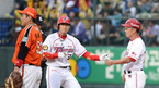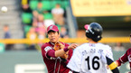 [OSEN=광주, 이대선 기자] 24일 오후 광주 무등야구장에서 열린 '2012 팔도 프로야구' KIA 타이거즈와 한화 이글스의 경기, 1회말 1사 3루 KIA 김원섭이 좌전 1타점 적시타를 치고 김평호 코치와 하이파이브를 하고 있다. 3연전 마지막