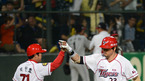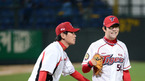 [OSEN=광주, 이대선 기자] 25일 오후 광주 무등야구장에서 열린 '2012 팔도 프로야구' KIA 타이거즈와 LG 트윈스의 경기, 6회말 무사 KIA 최희섭이 중월 솔로 홈런을 치고 백인호 코치와 하이파이브를 하고 있다. KIA가 4연승을 거둘 것