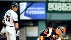 [OSEN=잠실, 곽영래 기자] 25일 오후 서울 잠실구장에서 열린 '2012 팔도 프로야구' 두산 베어스와 롯데 자이언츠의 경기 4회말 2사 1루 두산 최준석이 우익수 플라이 아웃으로 물러나자 아쉬워하고 있다. 삼성과의 주중 3연전을 루