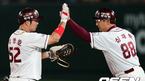 [OSEN=잠실, 곽영래 기자] 25일 오후 서울 잠실구장에서 열린 '2012 팔도 프로야구' 두산 베어스와 롯데 자이언츠의 경기 4회초 1사 1루 롯데 박종윤이 투런 홈런을 치고 덕아웃에서 송승준과 하이파이브를 하고 있다. 삼성과의 주