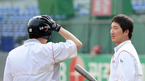 [OSEN=광주, 이대선 기자] 25일 오후 광주 무등야구장에서 열린 '2012 팔도 프로야구' KIA 타이거즈와 LG 트윈스의 경기에 앞서 LG 정성훈이 이진영의 헬멧을 써보며 이야기를 나누고 있다. KIA가 4연승을 거둘 것인가, LG의 연승인가. KI