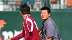 [OSEN=목동,지형준 기자] 25일 오후 서울 목동구장에서 열린 '2012 팔도 프로야구' 넥센 히어로즈와 한화 이글스의 경기, 경기전 한화 박찬호와 넥센 이택근이 이야기를 나누고 있다. 이날 넥센은 '핵잠수함' 김병현(33)을, 한화는 '