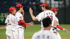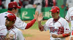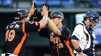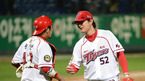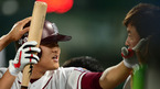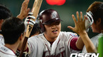 [OSEN=목동,지형준 기자] 25일 오후 서울 목동구장에서 열린 '2012 팔도 프로야구' 넥센 히어로즈와 한화 이글스의 경기, 9회말 1사 1,3루에서 넥센 오재일이 희생플라이로 동점을 만들며 더그아웃에서 동료선수들의 축하를 받고 있