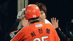 [OSEN=목동,지형준 기자] 25일 오후 서울 목동구장에서 열린 '2012 팔도 프로야구' 넥센 히어로즈와 한화 이글스의 경기, 8회초 1사 1루에서 한화 최진행이 역전 투런포를 날리고 류현진과 기뻐하고 있다. 이날 넥센은 '핵잠수함' 김