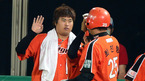 [OSEN=목동,지형준 기자] 25일 오후 서울 목동구장에서 열린 '2012 팔도 프로야구' 넥센 히어로즈와 한화 이글스의 경기, 9회초 한화 박찬호와 류현진이 더그아웃에서 이야기를 나누고 있다. 이날 넥센은 '핵잠수함' 김병현(33)을, 한