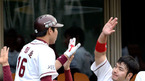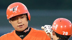 [OSEN=목동, 곽영래 기자] 26일 서울 목동구장에서 열린 '2012 팔도 프로야구' 넥센 히어로즈와 한화 이글스의 경기 7회초 2사 1,2루 한화 김태균이 1타점 적시타를 치고 최만호 코치와 기뻐하고 있다. 양팀은 26일 선발로 앤디 밴 헤