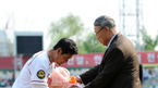 [OSEN=광주, 이대선 기자] 26일 오후 광주 무등야구장에서 열린 '2012 팔도 프로야구' KIA 타이거즈와 LG 트윈스의 경기에 앞서 이종범이 경기 종료후 은퇴식에 앞선 식전행사에서김응룡 전 해태타이거즈 감독에게 꽃다발을 받고 있