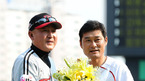 [OSEN=광주, 이대선 기자] 26일 오후 광주 무등야구장에서 열린 '2012 팔도 프로야구' KIA 타이거즈와 LG 트윈스의 경기에 앞서 이종범이 경기 종료후 은퇴식에 앞선 식전행사에서 김응룡 전해태 타이거즈 감독이 꽃다발을 전달하고