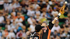 [OSEN=잠실, 이대선 기자] 27일 오후 잠실야구장에서 열린 '2012 팔도 프로야구' 두산 베어스와 롯데 자이언츠의 경기, 7회초 1사 3루 롯데 조성환이 중전 1타점 적시타를 치고 타임을 외치고 있다. 두산 베어스의 '써니' 김선우가 롯
