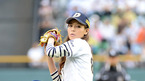 [OSEN=잠실, 이대선 기자] 27일 오후 잠실야구장에서 열린 '2012 팔도 프로야구' 두산 베어스와 롯데 자이언츠의 경기에 앞서 원더걸스 유빈이 시구를 하고 있다. 두산 베어스의 '써니' 김선우가 롯데 자이언츠를 상대로 시즌 3승을