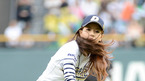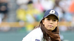 [OSEN=잠실, 이대선 기자] 27일 오후 잠실야구장에서 열린 '2012 팔도 프로야구' 두산 베어스와 롯데 자이언츠의 경기에 앞서 원더걸스 유빈이 시구를 위해 그라운드로 입장하고 있다. 두산 베어스의 '써니' 김선우가 롯데 자이언츠