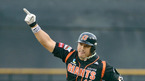 [OSEN=잠실, 이대선 기자] 27일 오후 잠실야구장에서 열린 '2012 팔도 프로야구' 두산 베어스와 롯데 자이언츠의 경기, 1회초 1사 1,2루 롯데 홍성흔이 선제 우중월 스리런 홈런을 날리고 환호하고 있다. 두산 베어스의 '써니' 김선우