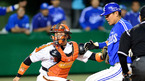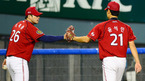 [OSEN=대전 ,백승철 기자] 29일 오후 대전 한밭구장에서 열린 '2012 팔도 프로야구' 한화 이글스와 삼성 라이온즈의 경기 4회초 2사, 정형식 박석민을 연달아 데드볼로 내보내면서 만루상황을 만들자 박찬호와 포수 정범모가 마운드