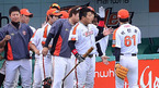 [OSEN=대전 ,백승철 기자] 29일 오후 대전 한밭구장에서 열린 '2012 팔도 프로야구' 한화 이글스와 삼성 라이온즈의 경기 2회초를 마친 박찬호가 덕아웃으로 향하며 동료들과 하이파이브를 하고 있다. 3연전 첫 날부터 한화는 '코리
