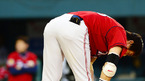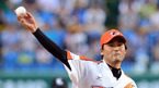 [OSEN=대전 ,백승철 기자] 29일 오후 대전 한밭구장에서 열린 '2012 팔도 프로야구' 한화 이글스와 삼성 라이온즈의 경기 3회초 박찬호가 마운드에서 신발끈을 묶고 있다. 3연전 첫 날부터 한화는 '코리안특급' 박찬호를 선발로 내