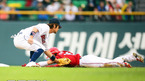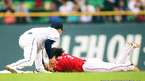[OSEN=잠실, 민경훈 기자] 29일 오후 서울 잠실구장에서 열린 두산 베어스와 KIA 타이거즈의 경기에서 1회초 무사 주자 1루 KIA 김선빈 타석에서 1루 주자 이용규가 2루 도루에 실패하고 있다. KIA 선발로 나서는 윤석민은 시즌 8경기 2