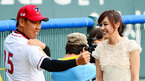 [OSEN=잠실, 민경훈 기자] 29일 오후 서울 잠실구장에서 두산 베어스와 KIA 타이거즈의 경기가 열릴 예정인 가운데 양 팀 훈련시간에 김민아 아나운서가 KIA 이범호와 즐겁게 얘기를 나누고 있다. KIA 선발로 나서는 윤석민은 시즌 8