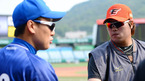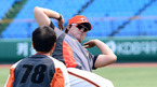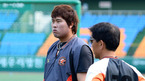 [OSEN=대전 ,백승철 기자] 29일 오후 대전 한밭구장에서 열리는 '2012 팔도 프로야구' 한화 이글스와 삼성 라이온즈의 경기 시작전 류현진이 훈련을 하고 있는 동료들에게 이야기를 건내고 있다. 3연전 첫 날부터 한화는 '코리안특