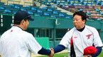 [OSEN=잠실, 민경훈 기자] 29일 오후 서울 잠실구장에서 두산 베어스와 KIA 타이거즈의 경기가 열릴 예정인 가운데 양 팀 훈련시간에 두산 김진욱 감독과 KIA 선동열 감독이 악수를 나누고 있다. KIA 선발로 나서는 윤석민은 시즌 8경