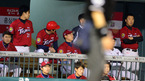 [OSEN=대전, 민경훈 기자] 30일 오후 대전 한밭야구장에서 열린 한화 이글스와 삼성 라이온즈의 경기에서 8회초 덕아웃 앞에서 한화의 추가 2실점을 지켜보던 박찬호가 김태균 류현진에게 말을 걸며 덕아웃 안으로 들어가고 있다.