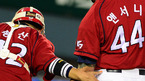 [OSEN=대전, 민경훈 기자] 30일 오후 대전 한밭야구장에서 열린 한화 이글스와 삼성 라이온즈의 경기에서 6회초 2사 주자 1,3루 위기를 넘긴 한화 선발 김혁민이 덕아웃으로 들어오며 김태균과 하이파이브를 하고 있다. 선발로 나