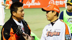 [OSEN=잠실,지형준 기자] 30일 오후 서울 잠실구장에서 열린 '2012 팔도 프로야구' 두산 베어스와 KIA 타이거즈의 경기, 5회말 수비를 마치고 KIA 송산과 앤서니가 서로를 격려하고 있다. 두산 선발 김승회는 올 시즌 6경기 2승 2패 평