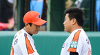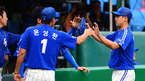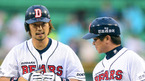 [OSEN=잠실,지형준 기자] 30일 오후 서울 잠실구장에서 열린 '2012 팔도 프로야구' 두산 베어스와 KIA 타이거즈의 경기, 1회말 1사 만루에서 두산 이성열이 2타점 적시 2루타를 날리고 전형도 코치와 기뻐하고 있다. 두산 선발 김승회