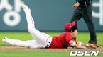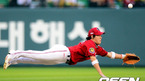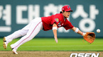 [OSEN=잠실,지형준 기자] 30일 오후 서울 잠실구장에서 열린 '2012 팔도 프로야구' 두산 베어스와 KIA 타이거즈의 경기, 2회말 무사에서 KIA 김선빈이 두산 정수빈의 타구에 몸을 날렸지만 놓치고 있다. 두산 선발 김승회는 올 시즌 6