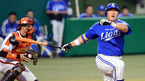[OSEN=대전 ,백승철 기자] 31일 오후 대전 한밭구장에서 열린 '2012 팔도 프로야구' 한화 이글스와 삼성 라이온즈의 경기 4회말 1사 1,2루 최진행의 1타점 적시타에 2루주자 한상훈이 홈에서 세이프되고 있다. 이날 삼성은 '영원한 에