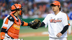 [OSEN=대전 ,백승철 기자] 31일 오후 대전 한밭구장에서 열린 '2012 팔도 프로야구' 한화 이글스와 삼성 라이온즈의 경기 4회초를 마친 류현진이 덕아웃으로 향하며 정범모와 하이파이브를 하고 있다. 이날 삼성은 '영원한 에이스'