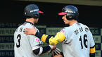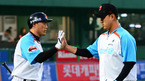 [OSEN=부산, 민경훈 기자] 31일 오후 사직구장에서 열린 '2012 팔도 프로야구' 롯데 자이언츠와 LG 트윈스의 경기에서 4회초를 마무리한 롯데 선발 송승준이 덕아웃 앞에서 조성환과 하이파이브를 하고 있다. 두 팀이 한 차례씩 승
