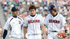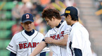 [OSEN=잠실, 이대선 기자] 31일 오후 서울 잠실야구장에서 열린 '2012 팔도 프로야구' 두산 베어스와 KIA 타이거즈의 경기, 2회초 1사 2루 두산 임태훈이 KIA 김선빈의 타구를 맞고 마운드를 내려가고 있다. 허리 통증까지 겹치며 1군