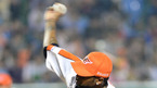 [OSEN=잠실, 이대선 기자] 31일 오후 서울 잠실야구장에서 열린 '2012 팔도 프로야구' 두산 베어스와 KIA 타이거즈의 경기, 9회초 2사두산 최준석 타석때 KIA 박지훈과 교체된 한기주가 힘차게 공을 던지고 있다. 허리 통증까지 겹치