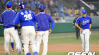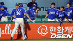 [OSEN=대전 ,백승철 기자] 31일 오후 대전 한밭구장에서 열린 '2012 팔도 프로야구' 한화 이글스와 삼성 라이온즈의 경기 8회초 1사 1,2루 최형우의 1타점 적시타때 홈을 밟은 2루주자 이승엽이 덕아웃에서 동료들과 하이파이브를 하