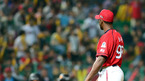 [OSEN=인천 ,백승철 기자] 1일 오후 인천 문학구장에서 열린 '2012 팔도 프로야구' SK 와이번스와 KIA 타이거즈의 경기 6회말 선두타자 정근우에게 솔로포를 내준 소사가 정근우를 바라보고 있다. SK는 올 시즌 10번째 등판하는 마리