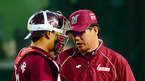 [OSEN=부산, 민경훈 기자] 1일 오후 사직구장에서 열린 '2012 팔도 프로야구' 롯데 자이언츠와 넥센 히어로즈의 경기에서 3회말 2사 주자 만루 롯데 문규현 타석에서 넥센 김시진 감독이 덕아웃 밖으로 걸어나와 지재옥 포수와 얘기