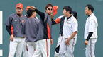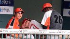 [OSEN=잠실, 지형준 기자] 1일 오후 서울 잠실구장에서 열린 '2012 팔도 프로야구' LG 트윈스와 한화 이글스의 경기, 경기전 한화 정민철 코치와 바티스타가 더그아웃에서 이야기를 나누고 있다. 2년차 선발투수 맞대결, LG와 한화는