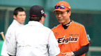 [OSEN=잠실, 지형준 기자] 1일 오후 서울 잠실구장에서 열린 '2012 팔도 프로야구' LG 트윈스와 한화 이글스의 경기, 경기전 한화 김용달 타격코치가 LG 김무관 타격 코치와 인사를 나누고 있다. 김용달 코치는 LG 타격코치를 역임했
