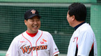 [OSEN=인천 ,백승철 기자] 1일 오후 인천 문학구장에서 열리는 '2012 팔도 프로야구' SK 와이번스와 KIA 타이거즈의 경기 시작전 이만수 감독과 선동렬 감독이 인사를 나누고 있다. SK는 올 시즌 10번째 등판하는 마리오를 선발로 내