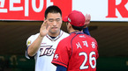 [OSEN=인천 ,백승철 기자] 2일 오후 인천 문학구장에서 열린 '2012 팔도 프로야구' SK 와이번스와 KIA 타이거즈의 경기 5회말을 마친 서재응이 덕아웃으로 향하며 김진우와 하이파이브를 하고 있다. SK는 왼 어깨 통증에 6개월여 기간