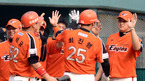 [OSEN=잠실, 곽영래 기자] 2일 오후 서울 잠실구장에서 열린 '2012 팔도 프로야구' LG 트윈스와 한화 이글스의 경기, 1회초 2사 1,2루 한화 최진행이 3점 홈런을 치고 한대화 감독과 하이파이브를 하고 있다. LG는 2일 잠실구장에서 열