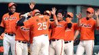 [OSEN=잠실, 곽영래 기자] 2일 오후 서울 잠실구장에서 열린 '2012 팔도 프로야구' LG 트윈스와 한화 이글스의 경기, 1회말 2사 2루 한화 최진행이 LG 이병규의 타구를 멋진 호수비로 잡아내 이닝을 마무리하고 덕아웃에서 선수들과
