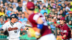 [OSEN=잠실, 곽영래 기자] 2일 오후 서울 잠실구장에서 열린 '2012 팔도 프로야구' LG 트윈스와 한화 이글스의 경기, 1회초 2사 1,2루 한화 최진행이 3점 홈런을 치고 베이스를 돌고 있다. LG 정성훈이 씁쓸한 표정으로 최진행을 바라보